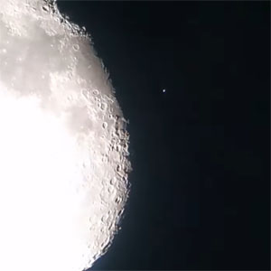 上の図は、レグルスの潜入と出現の場所を示したものです。潜入の時は、月の太陽に照らされている明るい側に隠されるため、肉眼でその瞬間を見るのは難しいかもしれませんが、望遠鏡を使えば、