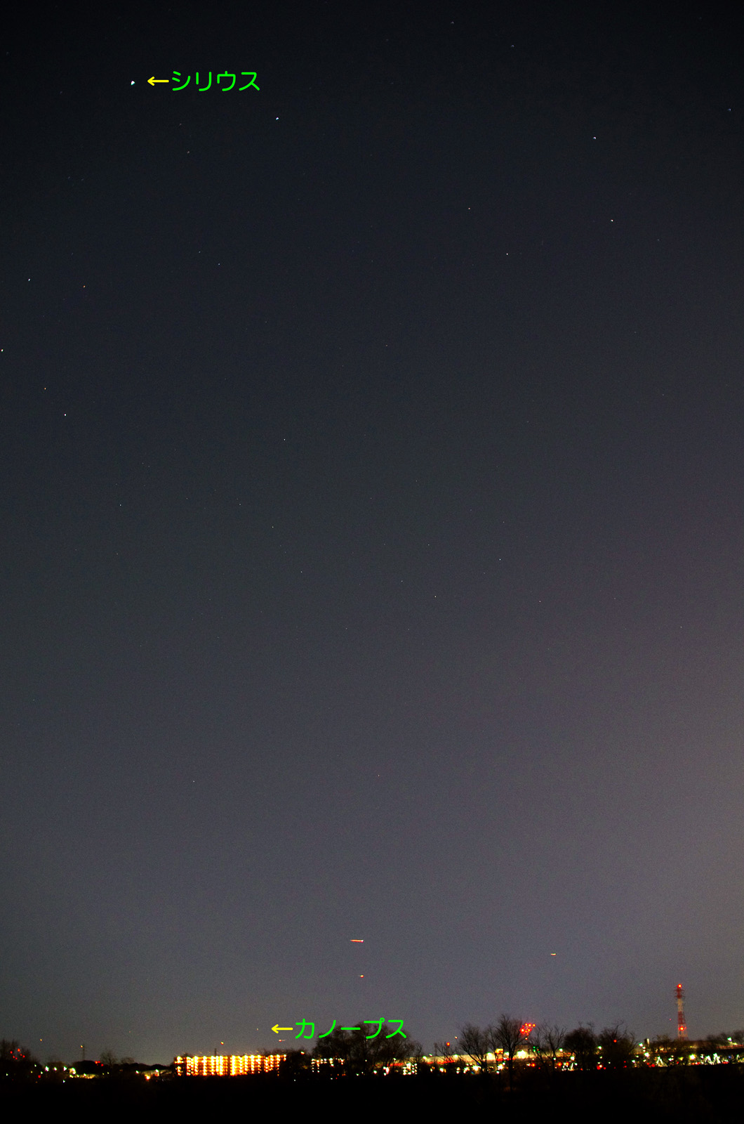 ![]() おおいぬ座からカノープス 30mmF/2.8 1秒露出 APS-C一眼レフ |