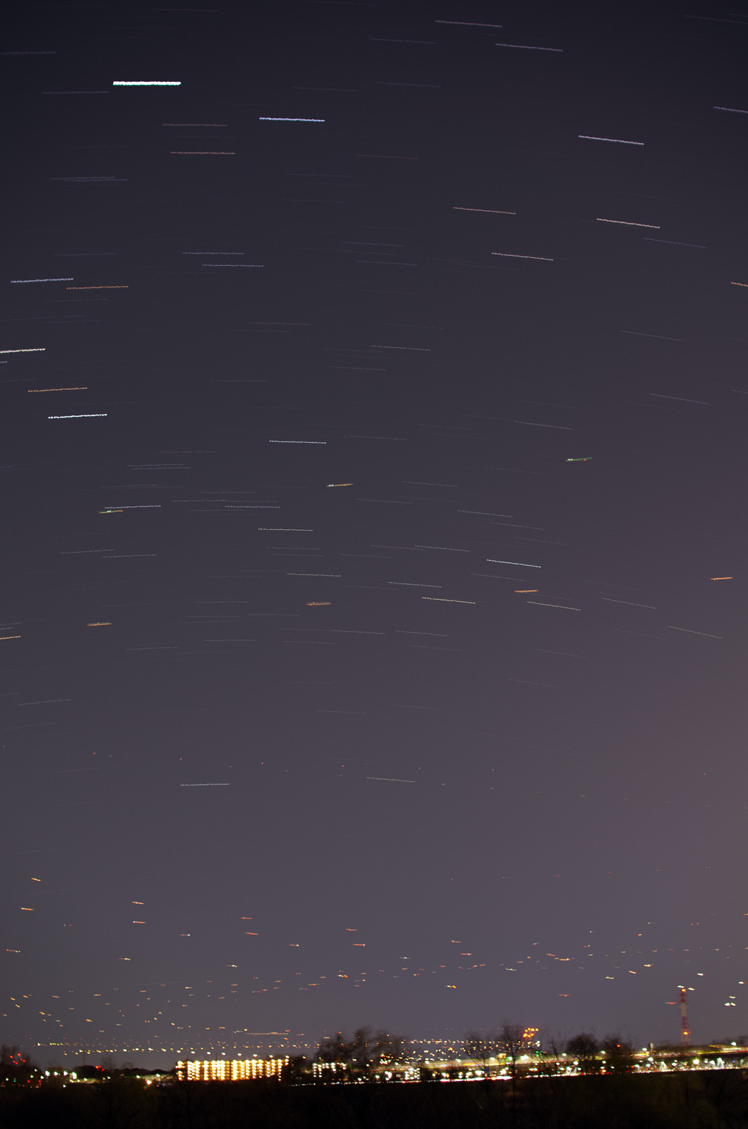 ![]() 左の写真を含む10分間の比較明合成 |