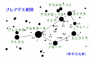 プレアデス星団がとてもきれいに明るく見えるのは、この星団が私たちの地球から400光年と比較的近い距離にあることと、直径わずか15光年ほどの中に約120個ほどの青白い超高温星が群がっているからです。もしも太陽をこの星団の中に入れたとしたら、地球からはなんと10等星ぐらいの暗い星になってしまいます。いかにプレアデス星団がすばらしく明るく輝いているのかがわかるでしょう。